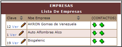 al lado del nombre de la empresa están los iconos necesarios para ver los empleados de una empresa y para añadir un empleado a una empresa.