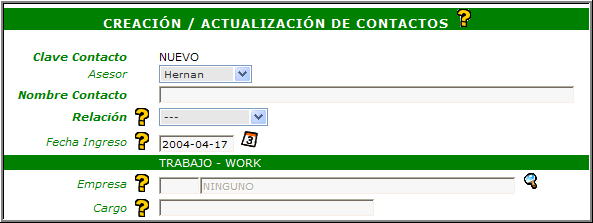 | INTHora | Hora de la interacción. Pre-inicializado con la hora de creación. Puede ser visto y modificado, si hay autorización para campos restringidos Tipo A |