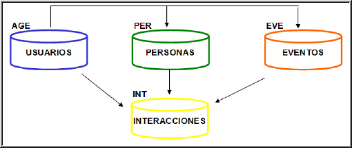 La tabla de INTERACCIONES es hija de todas las demás tablas, ya que una Interacción, pertenece a un usuario, es relativa a una Persona y a un evento. Sin embargo, pudiese darse el caso de que una interacción esté relacionada a una persona, pero no a un evento y vice-versa.