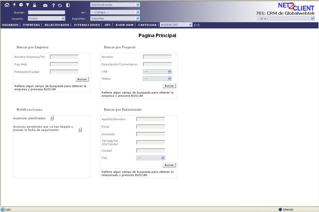 <nexusconf> <estilo>estilobusqueda.css</estilo> <titulo>Pagina Principal</titulo> <busquedas> <busqueda0 div='uno' tabla='PER' ordenamiento='PERCodigo DESC'> <titulo>Buscar por Relacionado</titulo> <linea> <campo> PERLinea2 </campo> <campo> PERLinea1 </campo> </linea> <linea> <campo> PEREmail1 </campo> </linea> <linea> <campo> PERBloque1 </campo> </linea> <linea> <campo> PERTel1 </campo> <campo> PERTel2 </campo> <campo> PERTel3 </campo> </linea> <linea> <campo> PERLinea4 </campo> </linea> <linea> <campo> PERLista1 </campo> </linea> </busqueda0> <busqueda1 div='dos' tabla='AR1'> <titulo>Buscar por Empresa</titulo> <linea> <campo> AR1Nombre </campo> <campo> AR1Tel1 </campo> </linea> <linea> <campo> AR1Linea1 </campo> </linea> <linea> <campo> AR1Linea2 </campo> </linea> </busqueda1> <busqueda2 div='tres' tabla='AR4' ordenamiento='AR4Codigo DESC'> <titulo>Buscar por Proyecto</titulo> <linea> <campo> AR4Nombre </campo> </linea> <linea> <campo> AR4Bloque1 </campo> <campo> AR4Bloque2 </campo> </linea> <linea> <campo> AR4Lista4 </campo> </linea> <linea> <campo> AR4Lista2 </campo> </linea> </busqueda2> </busquedas> <notificaciones div='cuatro' titulo='Notificaciones' botoncantidad='SI'> <notificacion0> <tablas>701AUS</tablas> <condicion>AUSFecha1>=*HOY*</condicion> <mensaje>Ausencias planificadas</mensaje> <campos> *AUSFecha1,AUSCodigo </campos> <ordenamiento>AUSFecha1 ASC</ordenamiento> </notificacion0> <notificacion1> <tablas>701INT</tablas> <condicion>INTCheckbox1=1 AND INTFecha1<*HOY*</condicion> <mensaje termino='SI'>Pendientes</mensaje> <campos> *INTFecha1, INTCodigo, INTFecha, INTNombre, INTPersona, INTBloque1, *INTBloque2,*INTCheckbox1 </campos> <ordenamiento>INTFecha1 ASC</ordenamiento> </notificacion1> </notificaciones> </nexusconf>