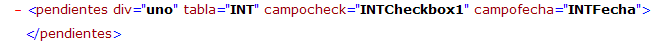 | <pendientes></pendientes> | Enmarca los parámetros a ser considerados en el listado de actividades pendientes. | div='[valor]' | Utilizado por la hoja de estilos para determinar la posición de la tabla de búsqueda en la página. Los valores que puede tomar son naturales consecutivos expresados en letras (ie. uno, dos,tres). |