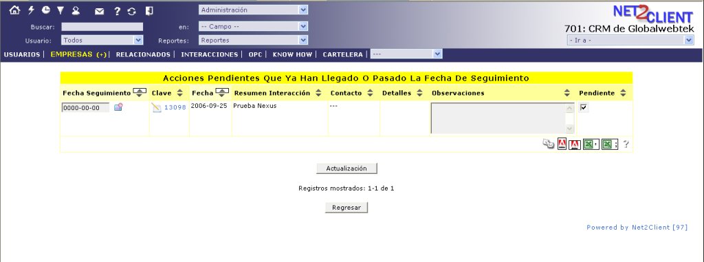 | <pendientesText></pendientesText> | Término $MM a utilizar en lugar del mensaje default "Acciones pendientes que ya han llegado o pasado la fecha de seguimiento". | ||