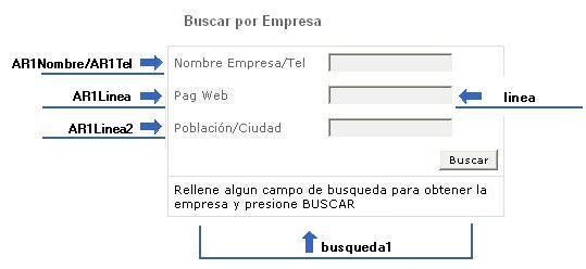<busqueda1 div='dos' tabla='AR1'> <titulo>Buscar por Empresa</titulo> <linea> <campo> AR1Nombre </campo> <campo> AR1Tel1 </campo> </linea> <linea> <campo> AR1Linea1 </campo> </linea> <linea> <campo> AR1Linea2 </campo> </linea> </busqueda1>